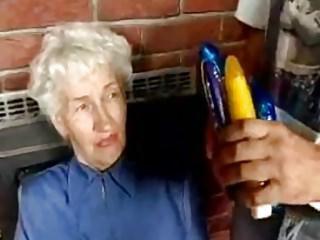Die grauharige Oma mit haarige Fotze bekommt die Dildo reingebuttert