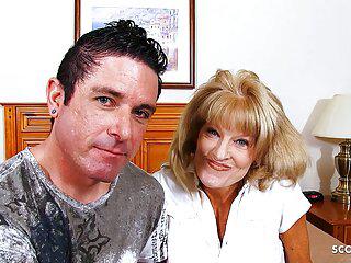 Die alte lässt sich vom Kellner lecken und auf dem Tisch rammel während Opa zuschaut – Mature4K